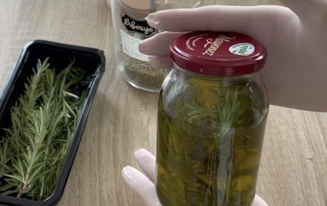 3. Прелијте го рузмаринот со чисто маслиново масло и добро затворете ја теглата.