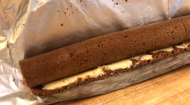 Потоа внимателно со помош на фолијата свиткајте го ролатот и оставете го неколку часови во фрижидер за да се стегне.