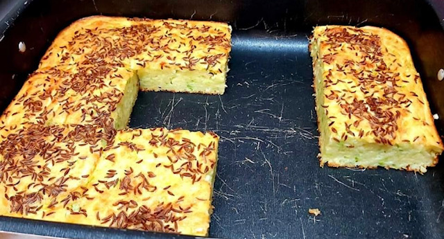 Одозгора наросете ким или семе по желба, па ставете да се пече во претходно загреана рерна на 200 степени околу 40 минути. Печената пита оставете неколку минути да подизлади, па сечете ја и послужете ја со јогурт, кисело млеко или по желба. Деталите можете да ги погледнете во видеото: