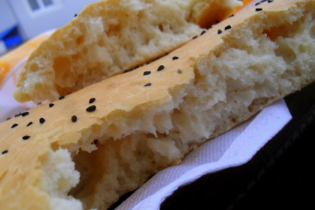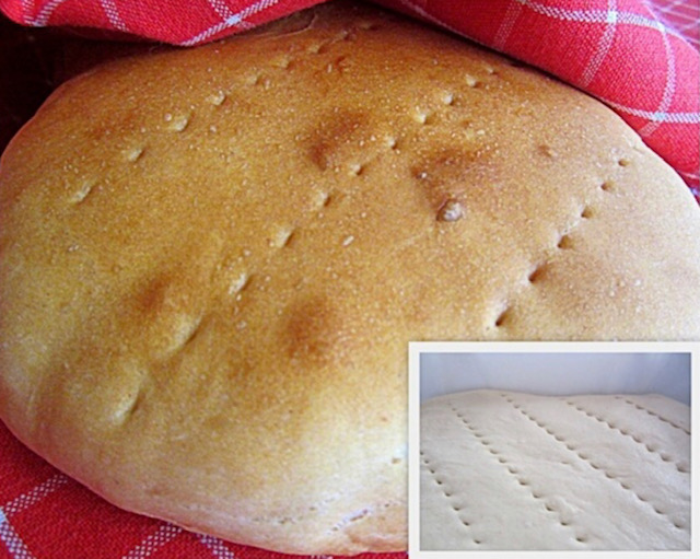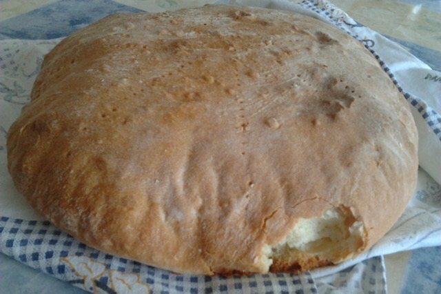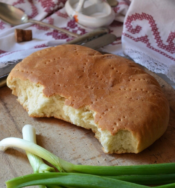 Од сите наведени состојки замесете меко и убаво тесто. Веднаш префрлете го на работна површина, обликувајте топка и после сплоснете ја со рацете правејќи погача.