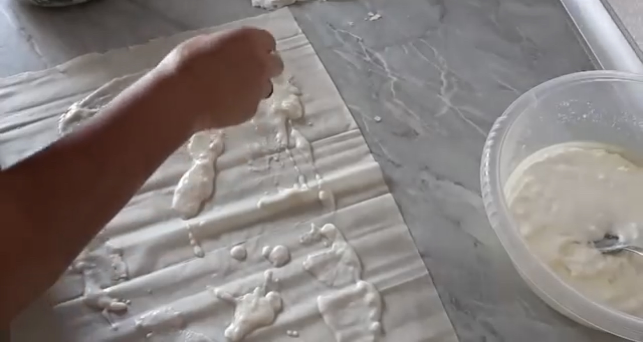 Постапка: За течен фил: Во поголем сад ставете две чаши кисела павлака (од 180 г), млеко, масло, белки, една лажица гриз и сол по вкус. Убаво промешајте за да се изедначи смесата. Сите состојки пред да ги употребите, треба претходно да бидат отстојани на собна температура.