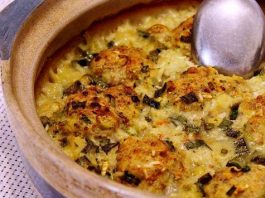 Ќофте во ориз со младо кромитче и полиено со крем супа,...