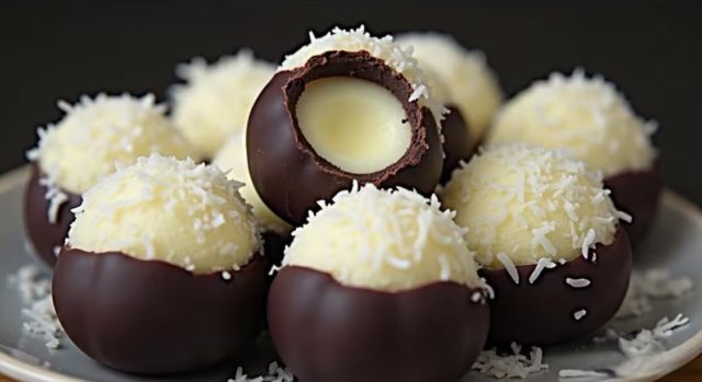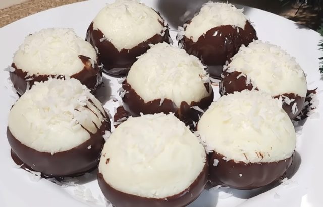 🎄 Брз божиќен десерт за 5 минути – кокосови чоколадни бомбици без печење