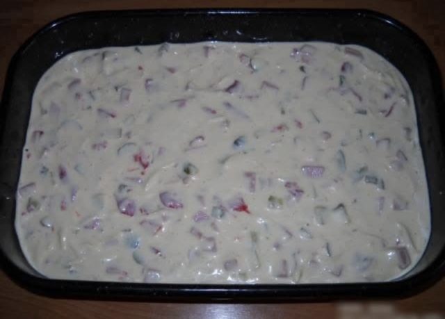 6. Смесата истурете ја во плех обложен со хартија за печење.