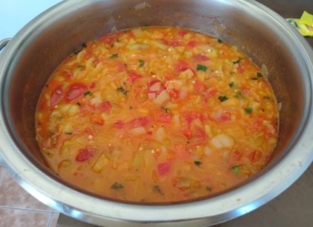 4. Додајте 3 кг исечкани домати и продолжете со готвење додека смесата да ја достигне посакуваната густина. За полесна конзистенција, оставете ја смесата малку поретка.