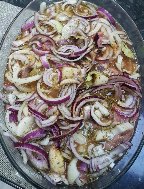 Фотографии на Ленче Гогова – Пилешко дробче динстано во многу кромид и зачини по вкус – во рерна!