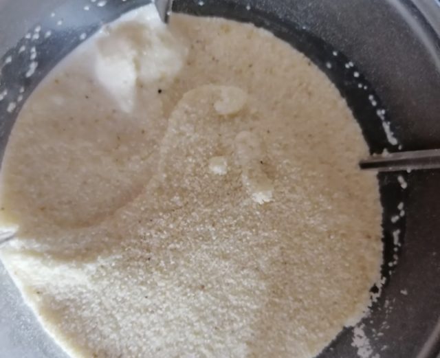 1. Во садот на блендер (како Nutribullet) ставете го јајцето, солта, млекото или јогуртот, гризот и брашното.