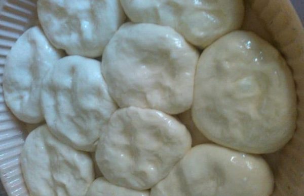 Потоа од тестото се кинат топчиња колку мало јаболко, се расплескува малку со кружен облик.