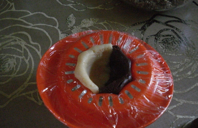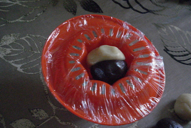 Поделете го на два дела, па во едниот додадете какао и добро соединете го со тестото. Завиктјате ги тестата во проѕирна фолија и оставете ги во фрижидер 15-20 минути.