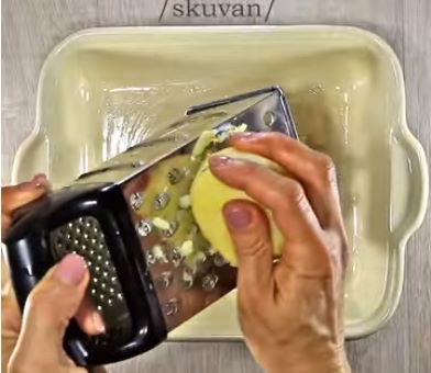 Измијте го компирот и сварете го во солена вода. Кога ќе излади излупете го и изрендајте го на крупно. Посолете и распоредете го на намастен и набрашнет плех.
