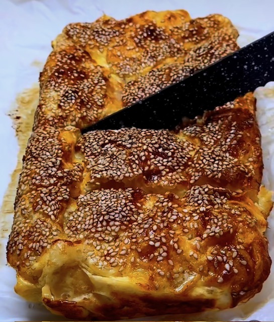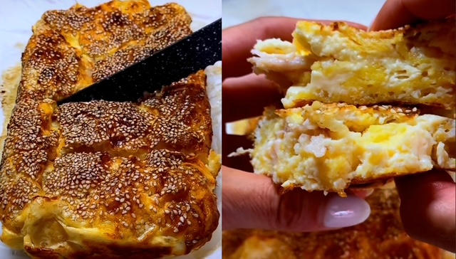 5. Печете во загреана рерна на 200°C околу 15-20 минути или додека питата добие златно-кафеава боја.