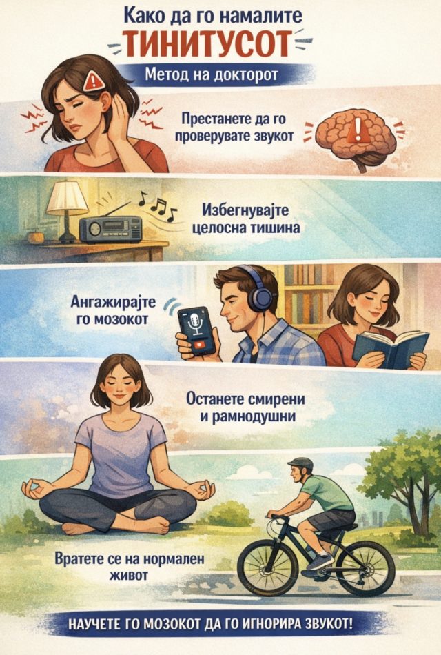 ⚠️ Важно: Овој метод не е лек, туку начин на тренирање на мозокот да престане да го засилува звукот. Кај голем број луѓе резултатите се постепени, но реални.