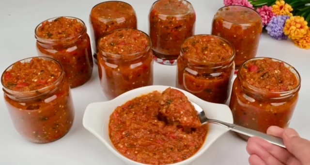 Рецепт за домашен сос од печени пиперки, модри патлиџани и домати