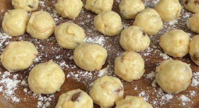 5. Со лесно намрсени раце кинете мали парчиња од тестото и обликувајте топчиња.