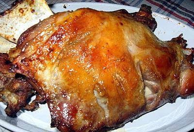 По желба месото премачкајте го со малку сенф. Покријте со алуминиумска фолија. Печете на 200 степени. Можете на почеток на посилен оган а потоа да намалите.