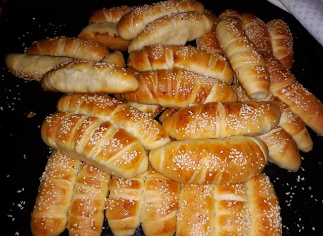 Потребни состојки: 1 кг брашно, 500 мл млако млеко, 1,5 лажица сол, 1 лажица шеќер, 150 мл масло, 1 коцка свеж квасец, 3 јајца од кои 2 жолчки се за мачкање, сусам за наросување, путер или маргарин за врз кифличките пред печење
