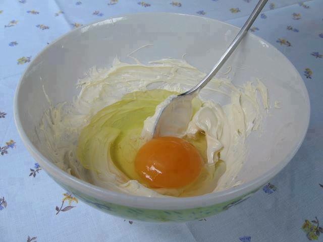 Изматете го добро јајцето со виљушка, додадете масло, сол по вкус, гризот и добро изматете.