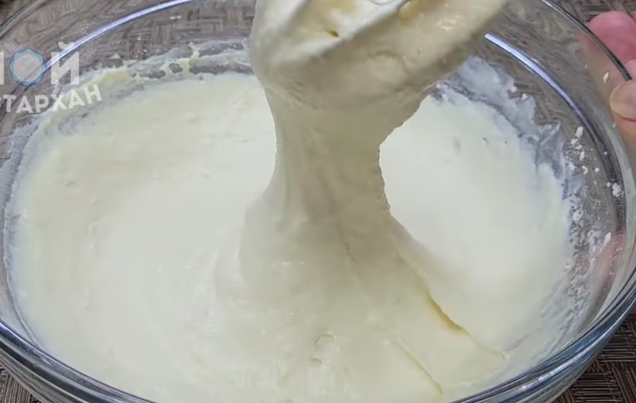 1. Во подлабок сад измешајте ги кефирот (или течниот јогурт), киселата павлака, јајцето, солта и содата бикарбона.