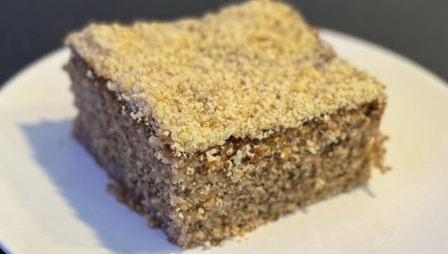10. Посипете го колачот со мелени ореви и оставете го да се олади 30–40 минути пред послужување.
