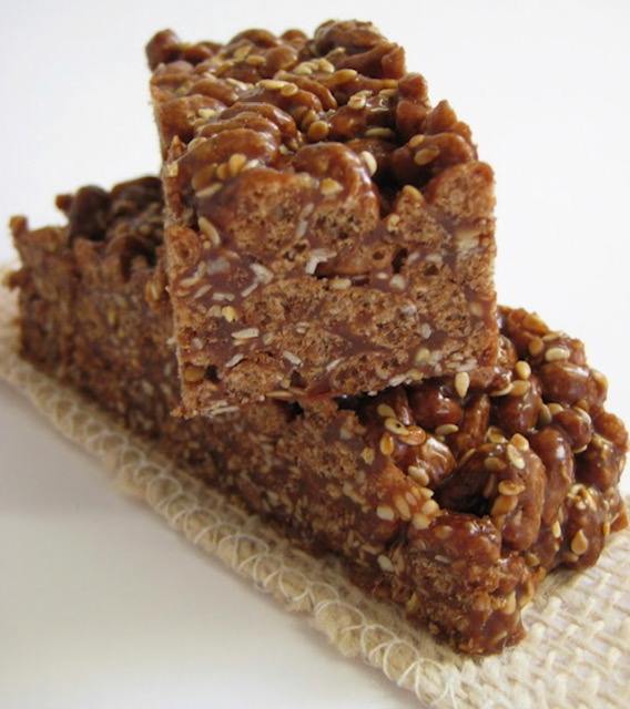 Постапка: Растопете го шеќерот, медот и маргаринот, па додадете го чоколадото искршено на коцки. Кога убаво ќе се изедначи смесата, додадете ги и останатите состојки, добро промешајте и нанесете рамномерно врз лист обланда. Откако ќе излади и стегне, сечете на коцки или штангли.