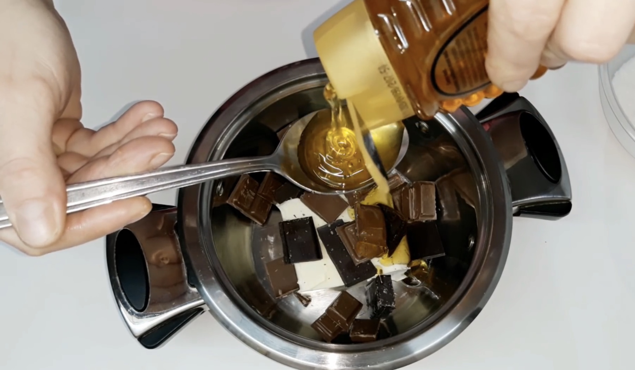 РЕЦЕПТ 3 Потребни состојки: 130 г шеќер, 1 ванилин шеќер, 170 г маргарин, 100 г млечно чоколадо, 50 г чоколадо за готвење, 6 лажици мед, 100 г мелени ореви, 120 г чоколадни топчиња. За глазура: 100 г чоколадо, 50 г маргарин