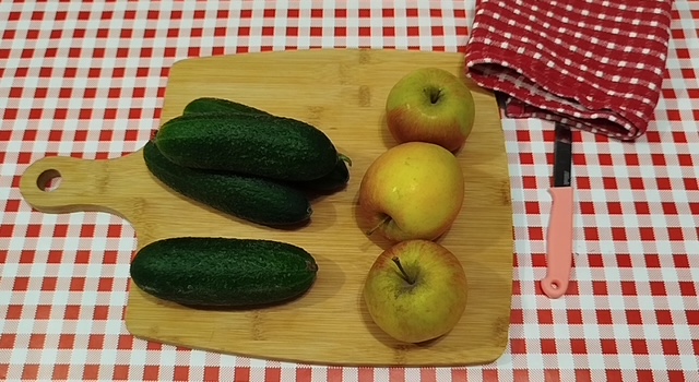 1. Изрендајте свежа краставица и јаболко, а потоа измешајте ги во сооднос 2:1.