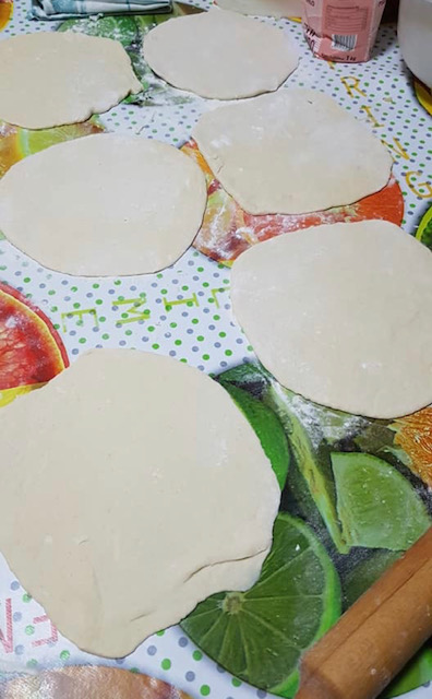 Подгответе ја тавата и загрејте го маслото. Со оклагија секое топче развлечете во поголем круг, приближно на величината на вашата тава.