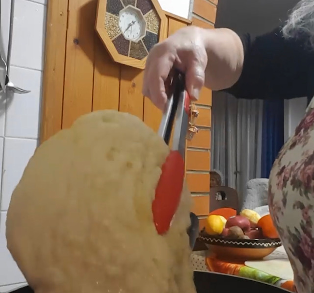 Добиеното тесто поделете го на 6-7 топчиња, па покријте ги за да се одмори малку тестото.