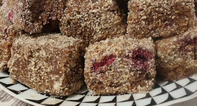 6. На крај, валкајте ги коцките во кокос, мелени ореви или мелена плазма, според ваш избор. Оставете ги да се стегнат пред сервирање.