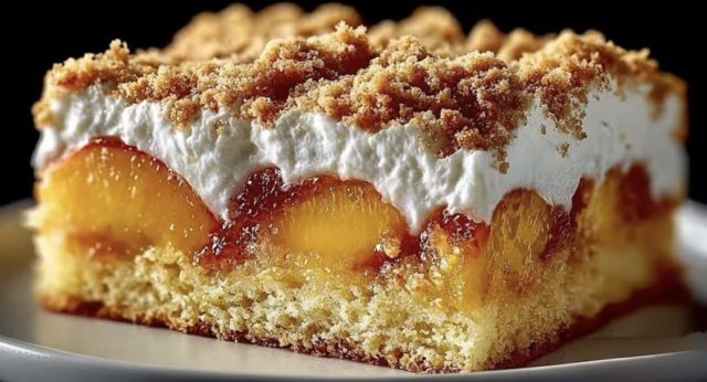 Мек, сочен и визуелно привлечен, овој зимски колач со праски и крем од урда е идеален избор кога сакате брз домашен десерт со минимална подготовка, а максимален ефект.