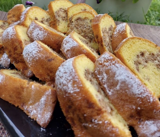 10. Оставете го колачот да се излади, па посипете со шеќер во прав пред сервирање.
