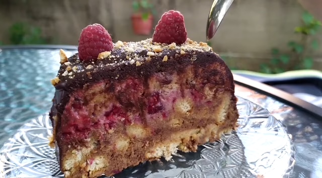 Подготвена за само 15 минути, без печење или варење, оваа торта комбинира крцкава текстура на плазма кекс, свежина на малини и богат вкус на чоколадо, пишува НМД.