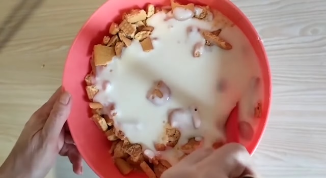 1. Во голем сад, искршете 300 г плазма кекс со рака и додајте 300 г мелена плазма, 8–10 лажици шеќер, по ваш вкус, и добро измешајте.