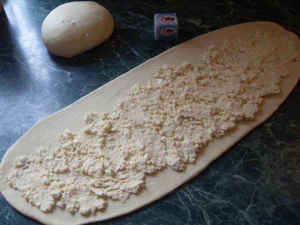 Надојденото тесто премесете го и поделете го на два помали дела, а секој дел развлечете го со оклагија во потенка кора.