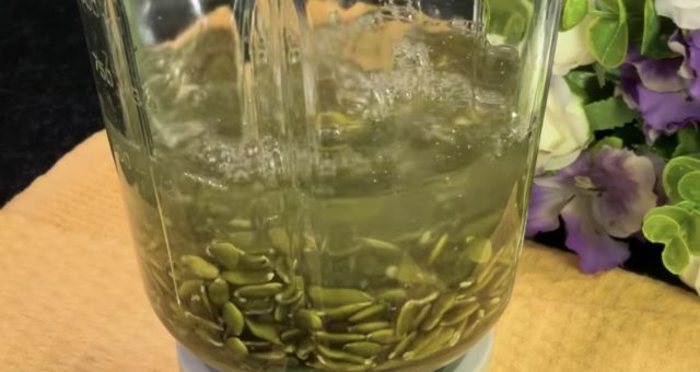 1. Потопете ги семките од тиква во вода 2–4 часа.