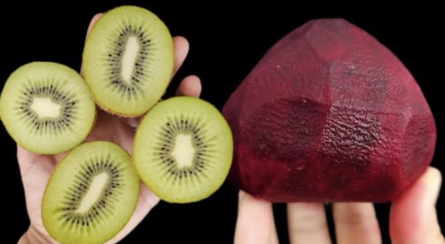 2. Цвеклото, јаболкото, кивито, лимонoт и портокалoт ставете ги во блендер.