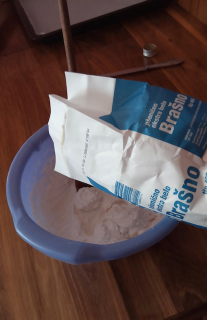 Изматете ги маста и шеќерот пенасто. Додадете го јогуртот, прашокот за печиво и замесете со брашното.
