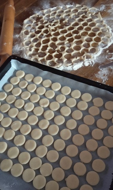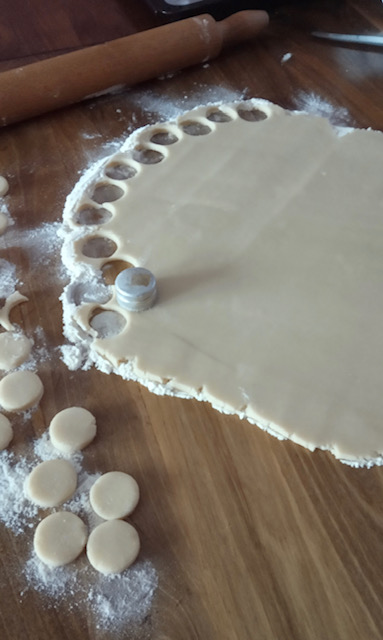 Развлечете кора со дебелина од 0,5 мм, па со модличка вадете ги ванилиците и редете ги на плех. Јас ги вадев со капаче од шише.