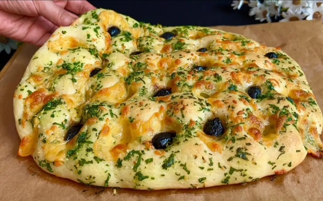 8. Сервирање: Оставете ја погачата кратко да се излади пред сечење. Послужете ја топла за да ги почувствувате сите ароми на билките и маслинките.