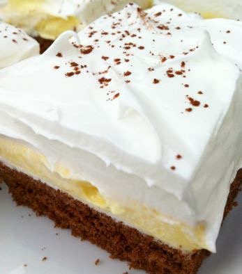 Снегот од белки нанесете го преку жолтиот крем. По желба наросете го колачот со какао или чоколадо во прав.