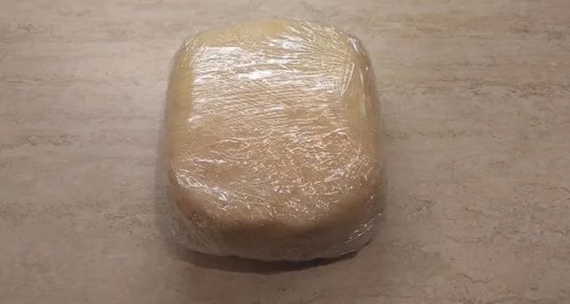 Подготвеното тесто обликувајте го во дебела коцка и завиткајте го во проѕирна фолија. Оставете во фрижидер до следниот ден (8-12 часа).