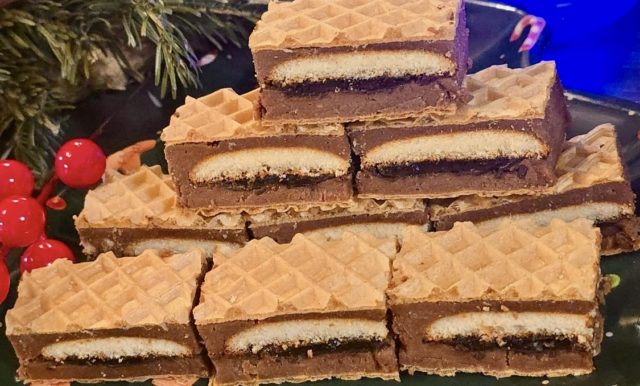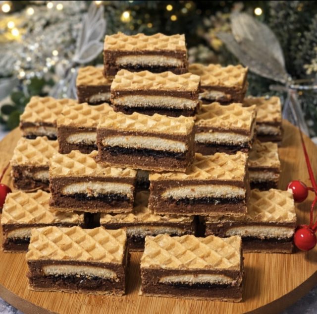 Јафа обландата е класичен десерт што секогаш остава впечаток – богата чоколадна смеса, освежувачка нота од портокал и препознатливиот вкус на јафа кекси, сè споено меѓу крцкави листови обланда.
