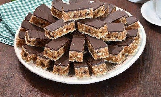 2.Тргнете од оган, додадете ги мелените бисквити и мелените ореви. Оставете да излади.