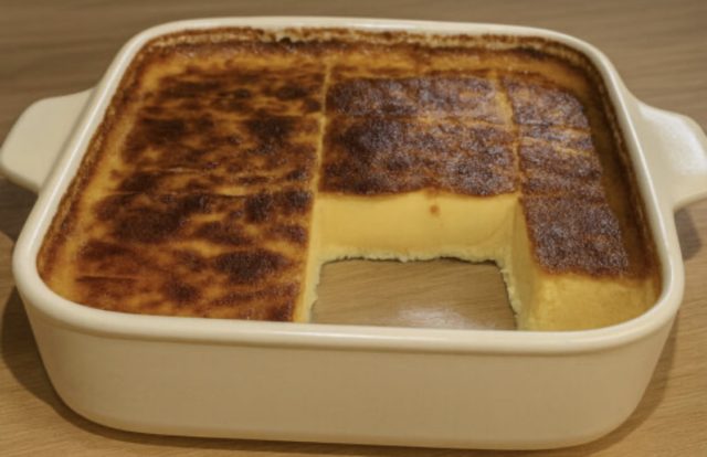 Без употреба на брашно и тесто, овој десерт се приготвува од само неколку едноставни состојки, а резултатот е богат, кремаст вкус кој потсетува на крем-карамел, но со погуста и поинтензивна текстура.