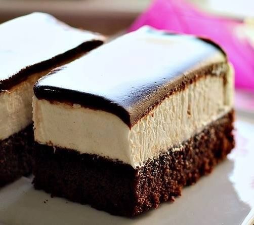 3.Измиксајте па истурете преку врелиот, печен бисквит. Вратете во рерна уште 2-3 минути, па извадете и одозгора полијте со глазура: загрејте ја хоплата, тргнете од оган, па додека е топла ставете го искршеното чоколадо и мешајте да се растопи и соедини.
