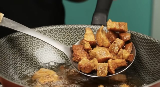 5. Пржење (втора фаза): Загрејте го маслото од првото пржење на средно висок оган.