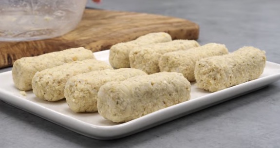 Започнете постепено да додавате по малку брашно сѐ додека да добиете тесто кое лесно се обликува со раце. Обликувајте ролати со должина на дланка и со приближна дебелина на орев.