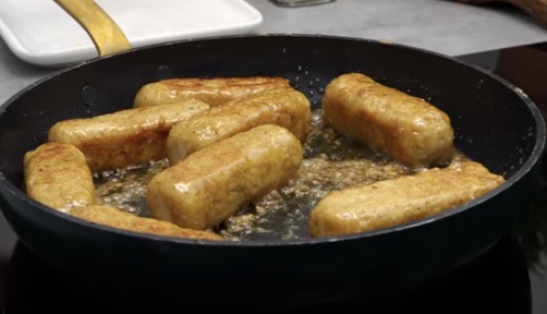 Загрејте малку масло во широка тава и пропржете ги ролатите на умерена температура додека да заруменат од сите страни.