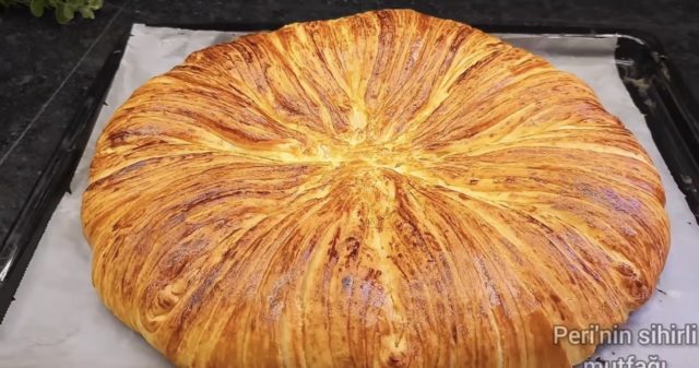 Оваа декоративна путер-погача е мека, слоевита и воздушеста, а нејзината форма изгледа како да е направена во професионална пекарница.