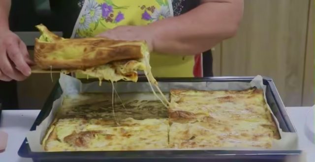 Печете околу 25 минути. Потоа додајте рендан кашкавал и вратете во рерна уште 10 минути, додека да се растопи и добие златна боја.